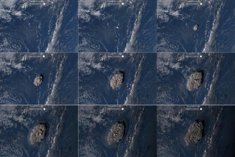 汤加首都努库阿洛法以北约65公里处的洪阿哈阿帕伊岛14日上午开始发生火山喷发,15日下午再次喷发。火山喷发致使大量火山灰、气体与水蒸气进入高空形成巨大云团,喷发至高空20千米处。这座火山曾于2021年12月20日开始,连续喷发数日。2015年,洪阿哈阿帕伊岛火山也曾喷发过。