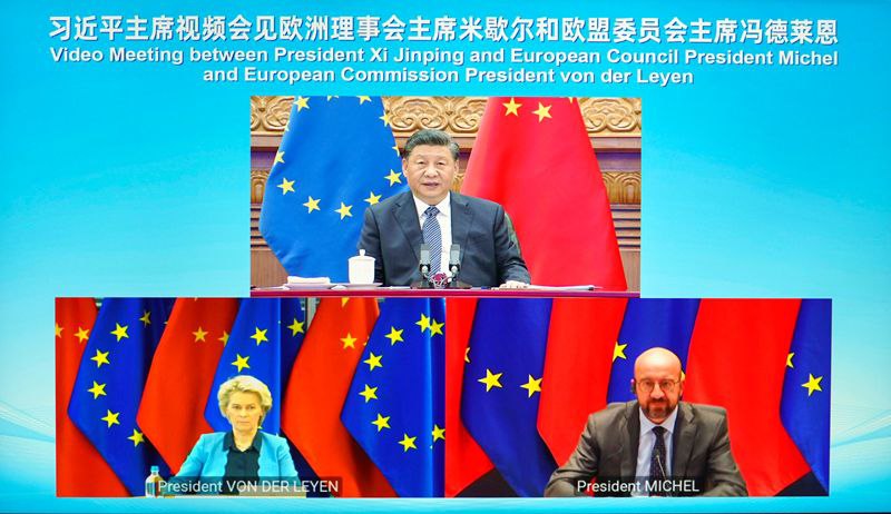 习近平指出,中欧要做促进共同发展的两大市场,以中欧开放合作推进经济全球化深入发展。中国将坚定不移深化改革、扩大开放,欢迎欧洲企业来华投资兴业,希望欧方为中国企业赴欧投资发展提供公平、透明、非歧视性的环境。双方要加强发展战略对接,探索中国新发展理念、新发展格局同欧盟“开放性战略自主”经贸政策的契合点。